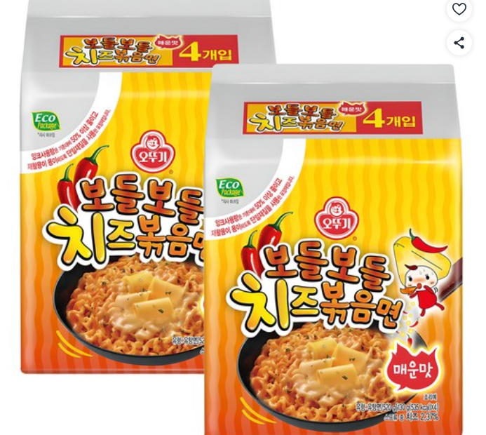 [쿠팡핫딜] 오뚜기 보들보들 치즈볶음면 매운맛 130g, 8개 (5,600원/무료)