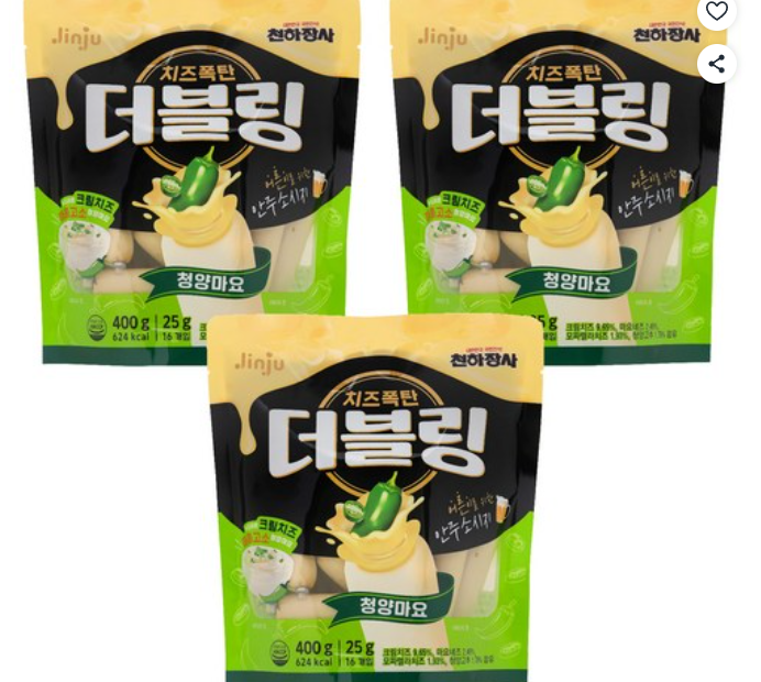 [쿠팡핫딜] 진주햄 더블링 청양마요 간식 소시지, 400g, 3개 (13,810원/무료)