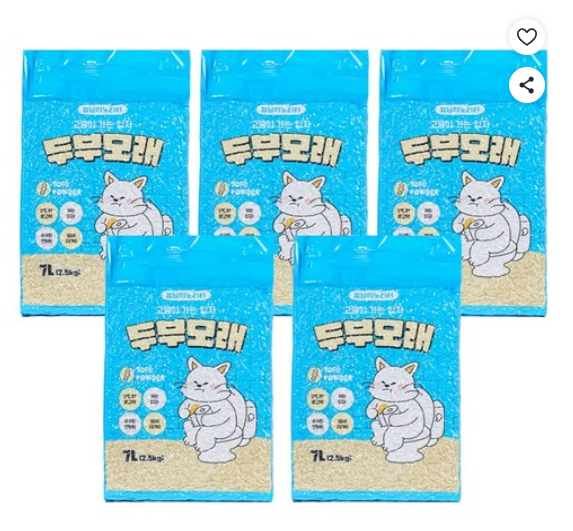 [쿠팡핫딜] 멍냥이노리터 고양이 가는입자 두부 모래, 2.5kg, 무향, 5개 (19,990원/무료)
