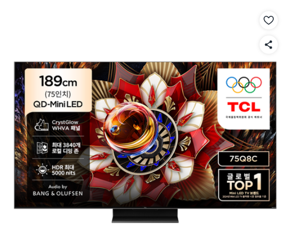 [쿠팡핫딜] TCL 4K QD Mini LED 스마트 TV 75인치 (1,963,340원/무료)
