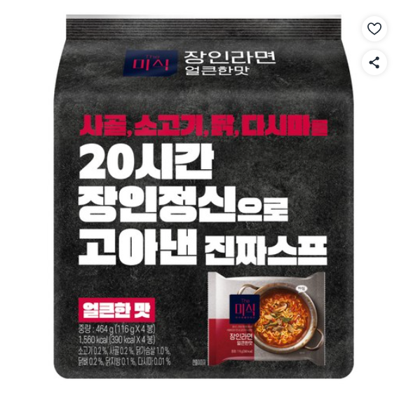 [쿠팡핫딜] 더미식 장인라면 얼큰한맛 116g, 4개 (3,100원/무료)