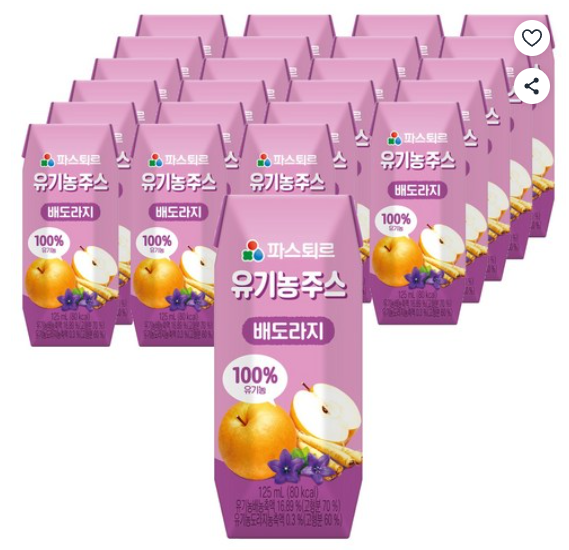 [쿠팡핫딜] 파스퇴르 유기농 주스 배도라지, 125ml, 24개 (9,400원/무료)