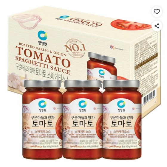 [쿠팡핫딜] 청정원 토마토 스파게티소스, 600g, 3개 (9,790원/무료)