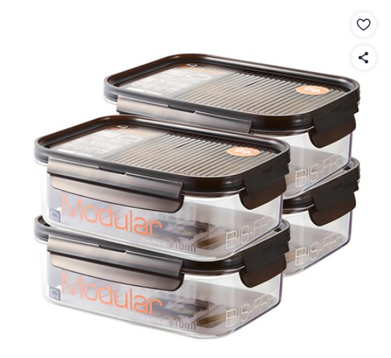 [쿠팡핫딜] 락앤락 비스프리 모듈러 직사각 밀폐용기, 4개, 910ml (19,620원/무료)