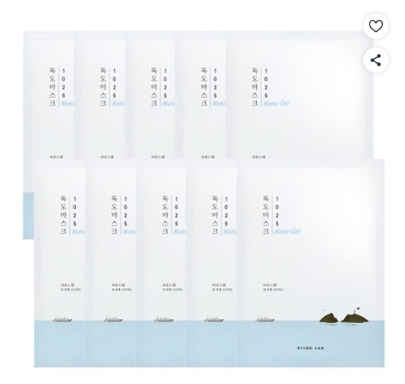 [쿠팡핫딜] 라운드랩 1025 독도 수분 워터겔 마스크 30ml, 1개입, 10개 (10,900원/무료)