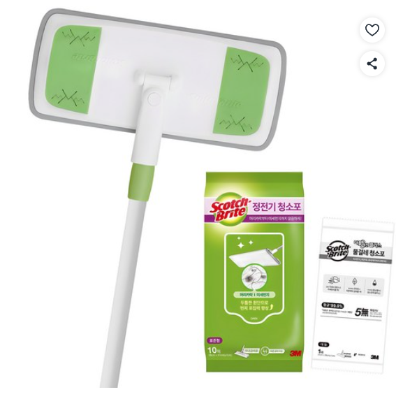 [쿠팡핫딜] 스카치브라이트 이지클린 막대걸레 표준형 + 정전기청소포 10매+물걸레청소포 1매, 1세트 (12,480원/무료)