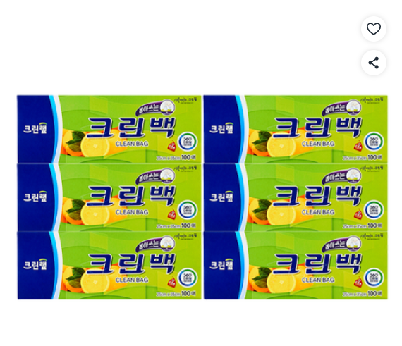 [쿠팡핫딜] 크린랩 뽑아쓰는 크린백 25cm x 35cm, 100개입, 6개 (9,740원/무료)
