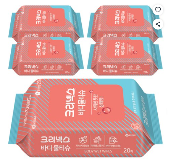 [쿠팡핫딜] 크리넥스 바디 물티슈 리필형 랜덤 발송, 20매입, 5개 (4,200원/무료)