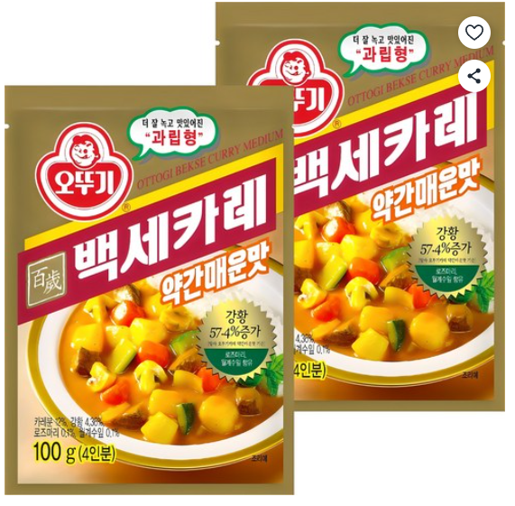 [쿠팡핫딜] 오뚜기 백세카레 과립형 약간매운맛, 100g, 2개 (3,780원/무료)