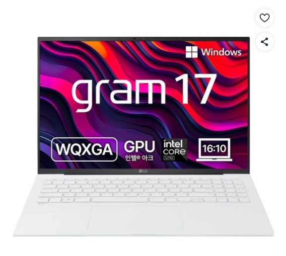 [쿠팡핫딜] LG전자 2025 그램 17 코어Ultra5 (1,475,280원/무료)