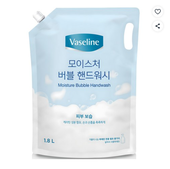 [쿠팡핫딜] 애경바세린 모이스처 버블 핸드워시 리필, 1.8L, 1개 (8,000원/무료)