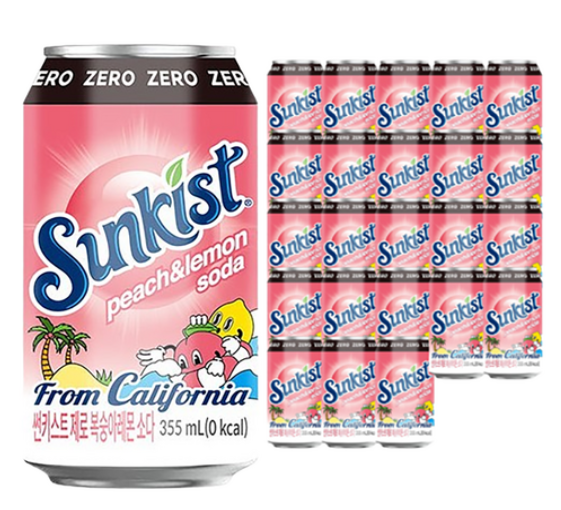 [쿠팡핫딜] 썬키스트 제로 복숭아레몬 소다, 355ml, 24개 (9,980원/무료)