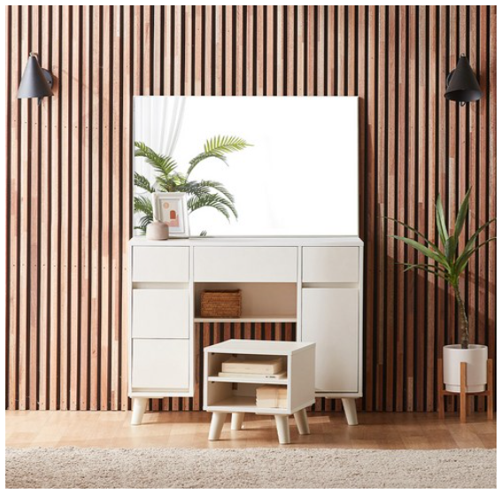 [쿠팡핫딜] 파로마 데이지 수납 화장대 + 스툴 세트 방문설치, 화이트 (99,500원/무료)